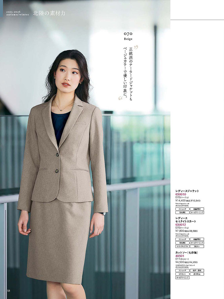 TOPページ > オンラインカタログ > 秋冬 事務服 アイトス事務服 北陸の素材力 > > P.051