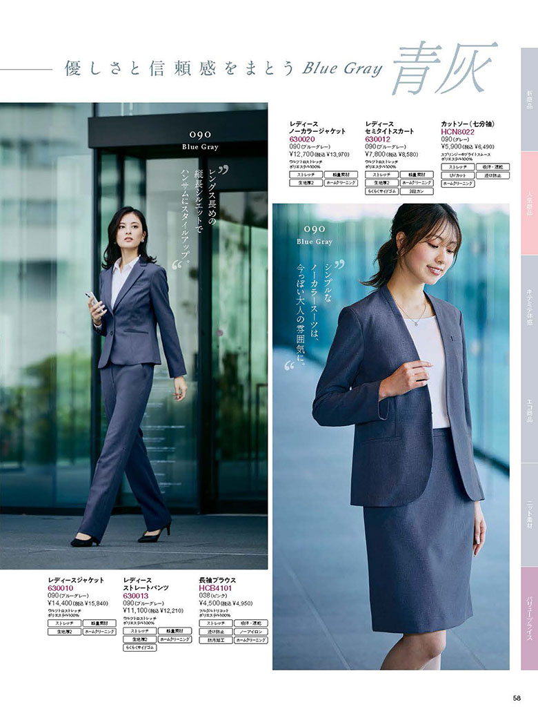TOPページ > オンラインカタログ > 秋冬 事務服 アイトス事務服 北陸の素材力 > > P.058