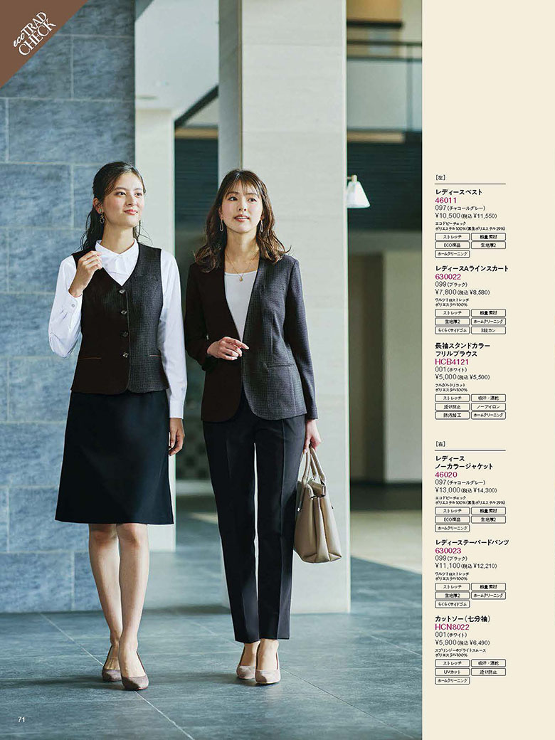 TOPページ > オンラインカタログ > 秋冬 事務服 アイトス事務服 eco TRAD CHECK > > P.071
