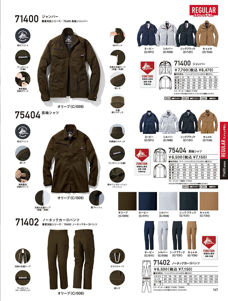 TOPページ > オンラインカタログ > 秋冬 作業服 自重堂 Z-DRAGON > > P.167