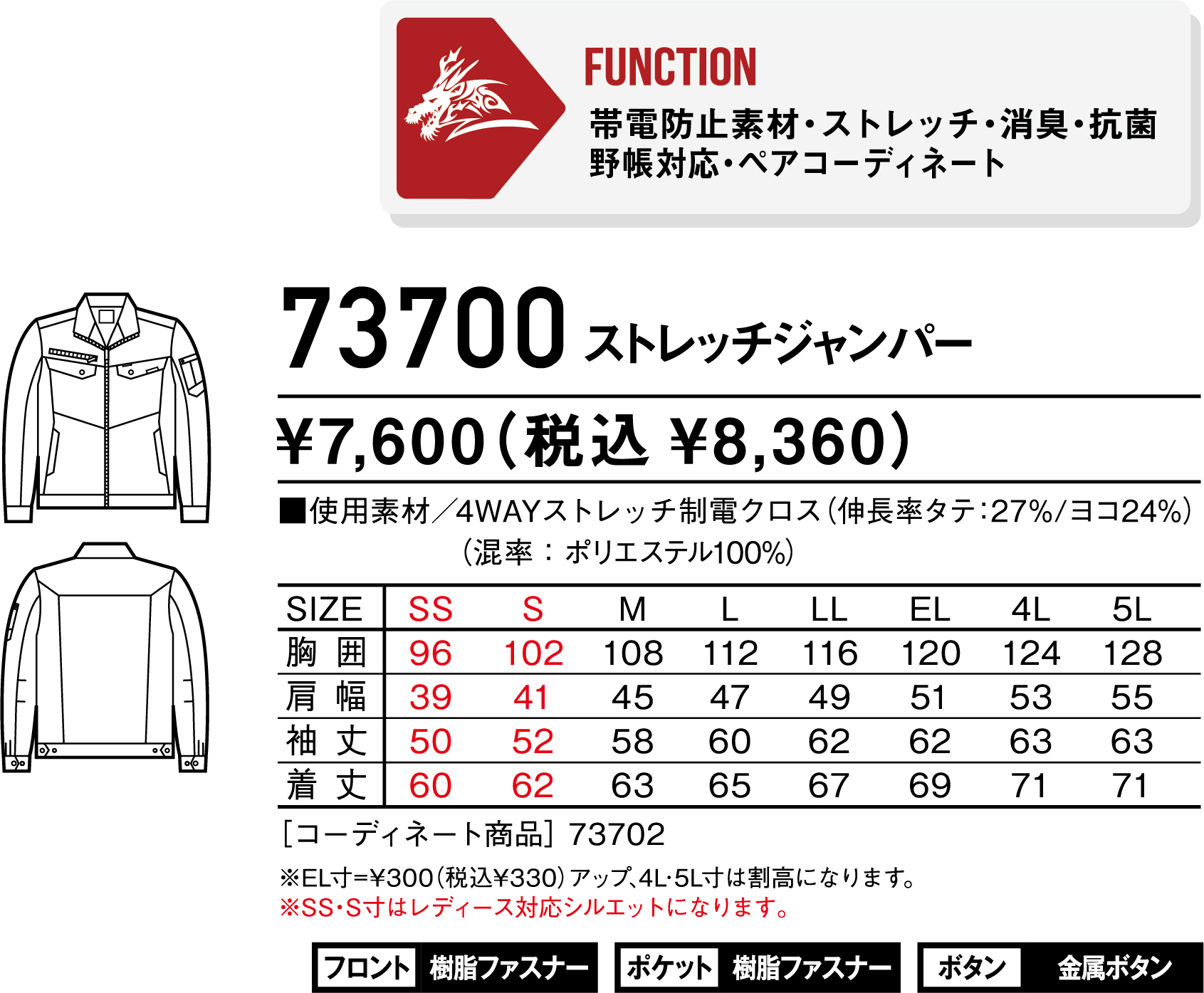 【自重堂】 秋冬用ストレッチジャンパー【新商品予約購入】 / 73700
