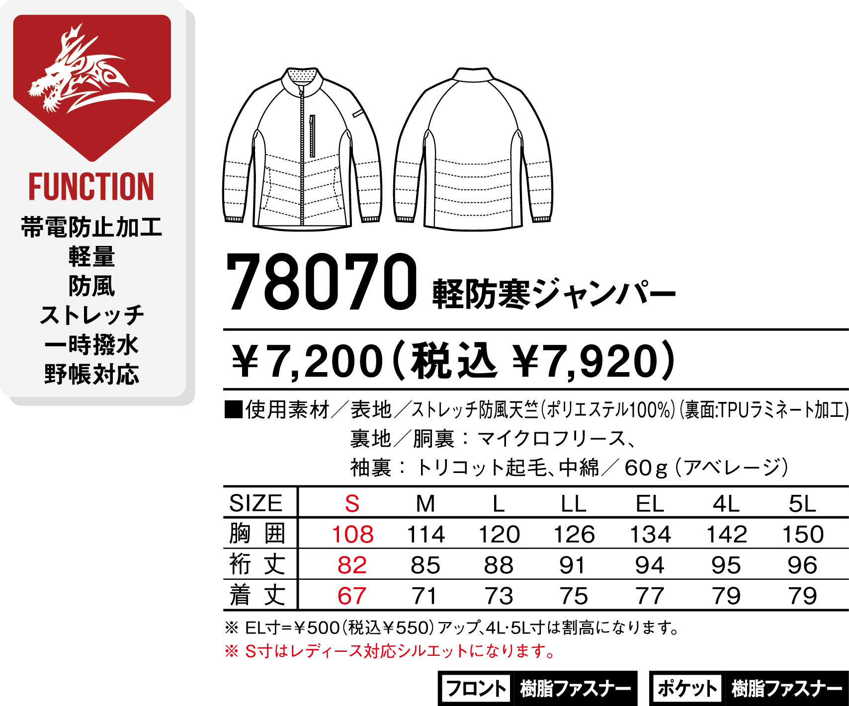 【自重堂】 軽防寒ジャンパー【新商品予約購入】 / 78070