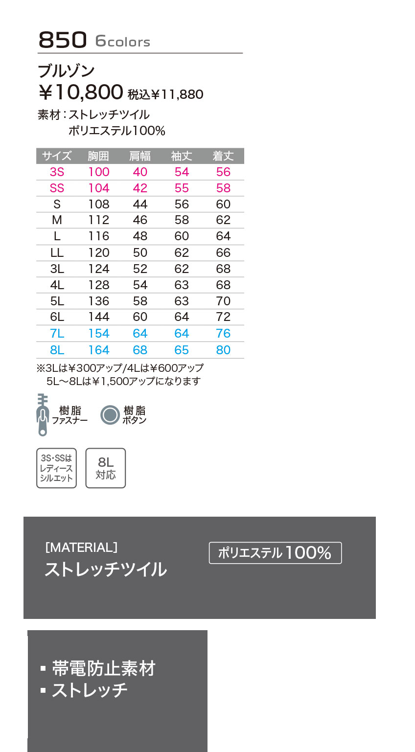 3S,SS,S,M,L,LL,3L,4L,5L,6L,7L,8L
