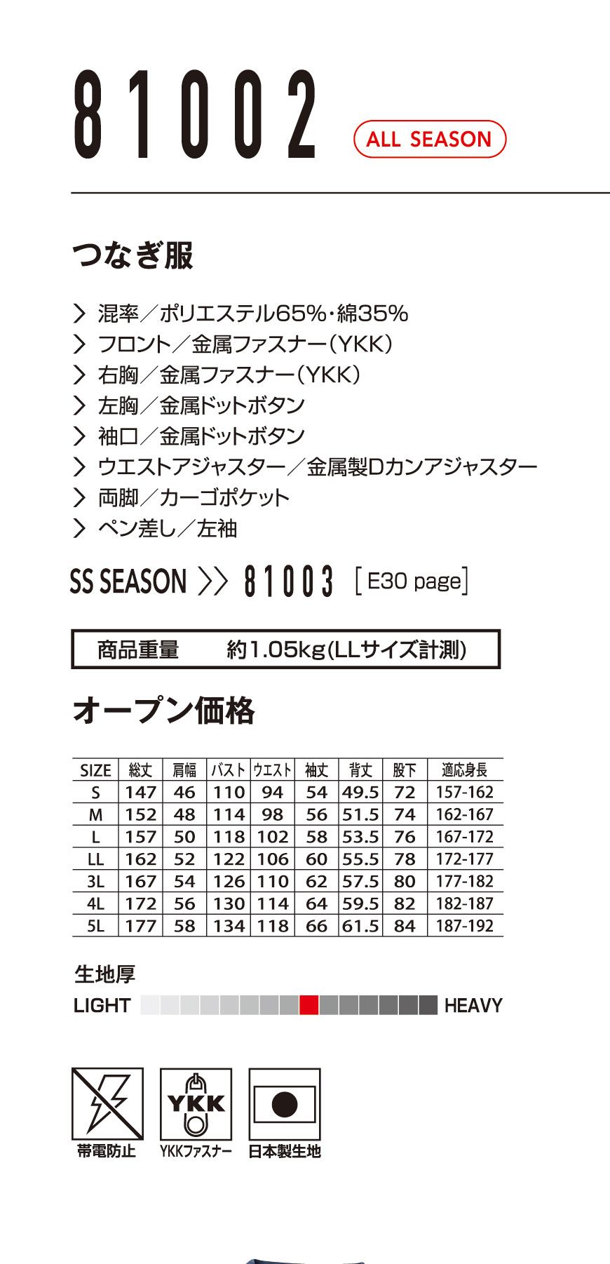 TOPページ > メーカーから探す > 山田辰一覧 > EDWIN秋冬つなぎ服一覧 > aue81002