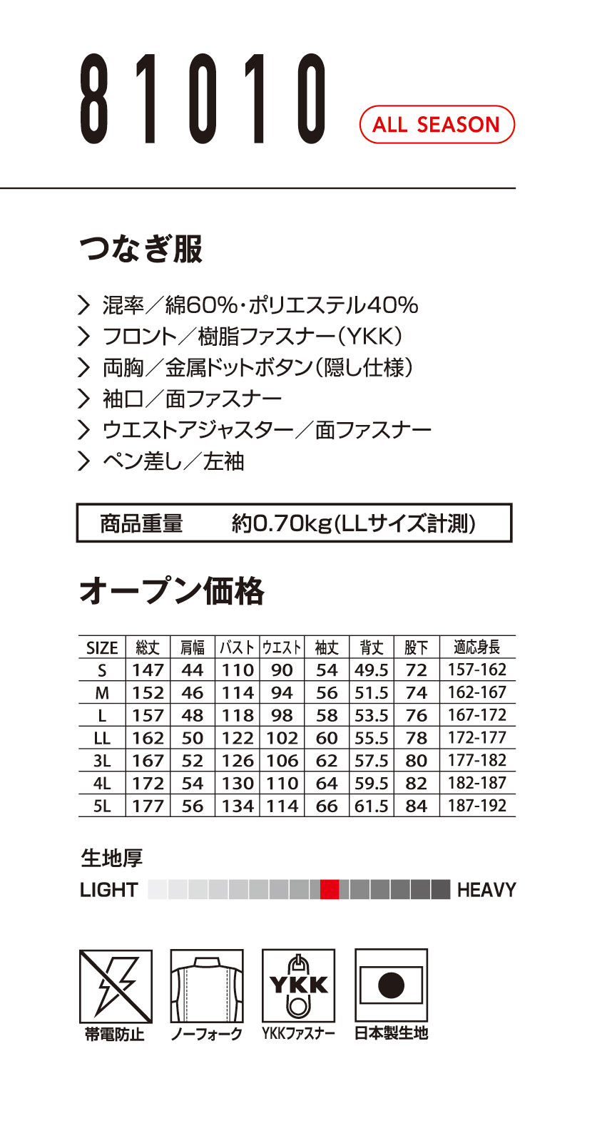 TOPページ > メーカーから探す > 山田辰一覧 > EDWIN秋冬つなぎ服一覧 > aue81010