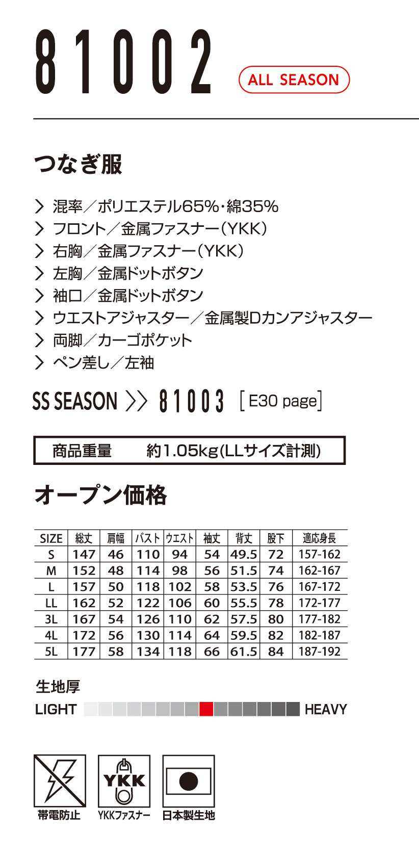 TOPページ > メーカーから探す > 山田辰一覧 > EDWIN秋冬つなぎ服一覧 > aue81012