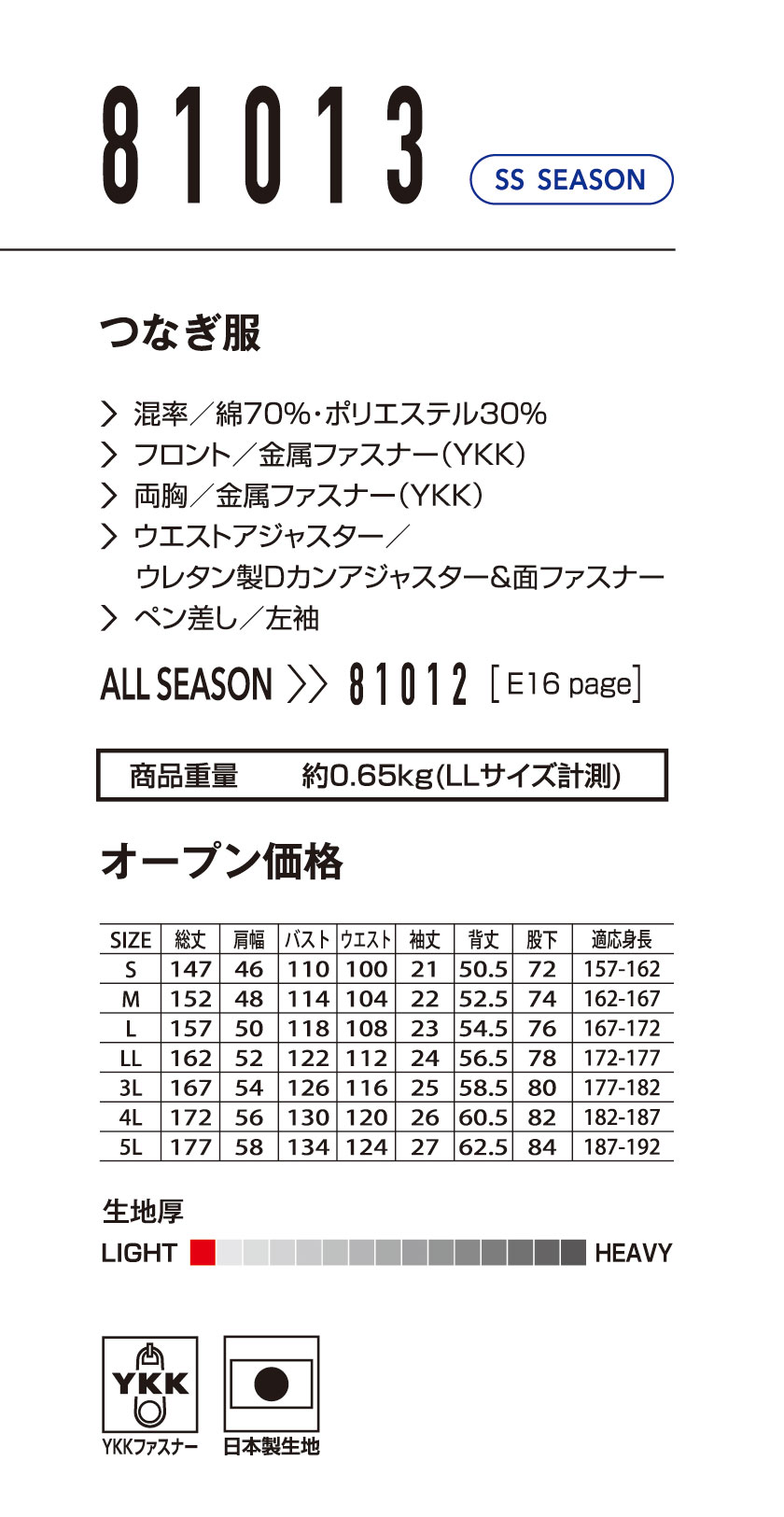 TOPページ > メーカーから探す > 山田辰一覧 > EDWIN春夏半袖つなぎ服一覧 > aue81013
