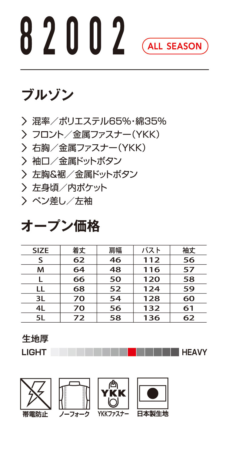 TOPページ > アイテムから探す > 作業服(上着) > 秋冬用ブルゾン > EDWIN秋冬用ブルゾン一覧 > aue82002
