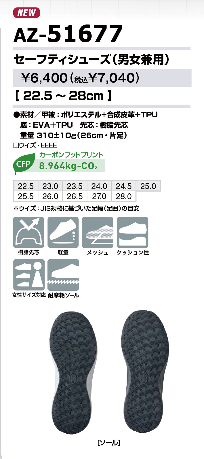 【新商品予約受付中】ウイズ4E仕様とコスト面にも配慮した耐久性の高い軽量セーフティシューズ。 |