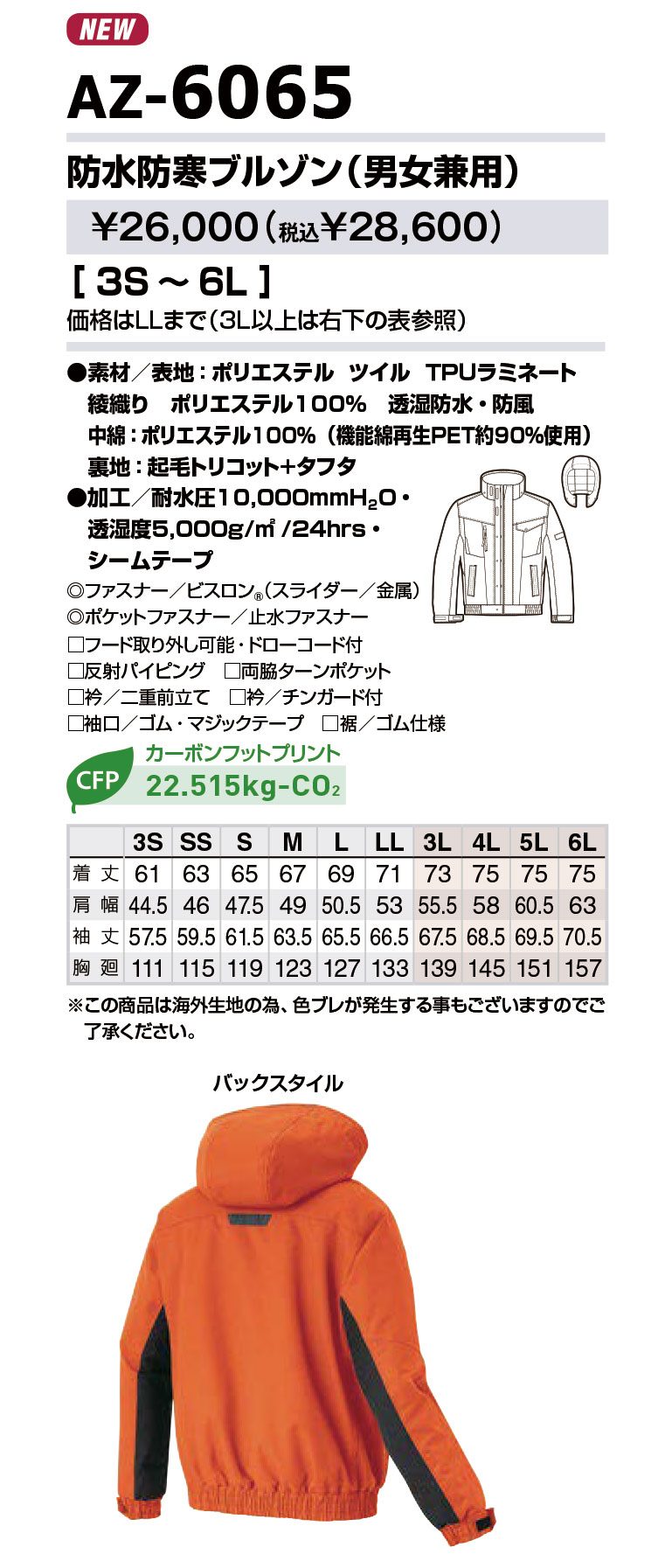 【アイトス】 防水防寒ブルゾン(男女兼用)【新商品予約購入】 / az6065