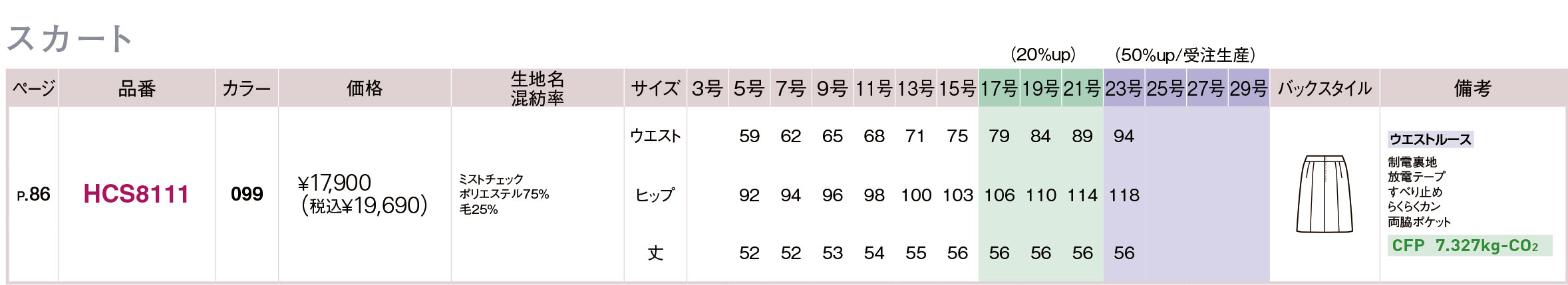 TOPページ > アイテムから探す > 事務服パンツ・スカート > スカート > アイトス事務服スカート一覧 > azhcs8111