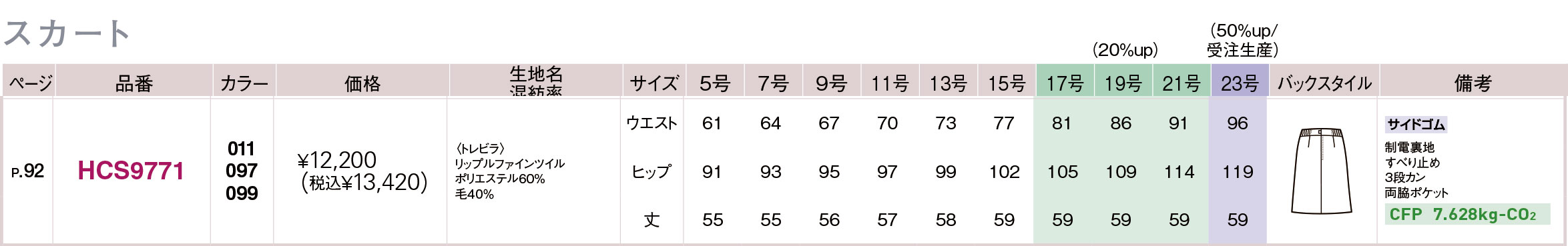 TOPページ > アイテムから探す > 事務服パンツ・スカート > スカート > アイトス事務服スカート一覧 > azhcs9771