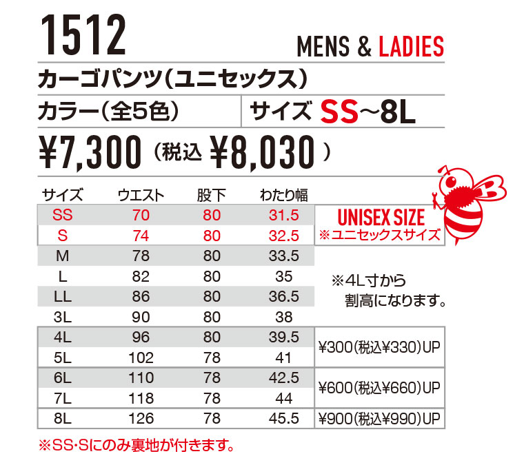 代替品:バートル kr1512 春夏用カーゴパンツ |