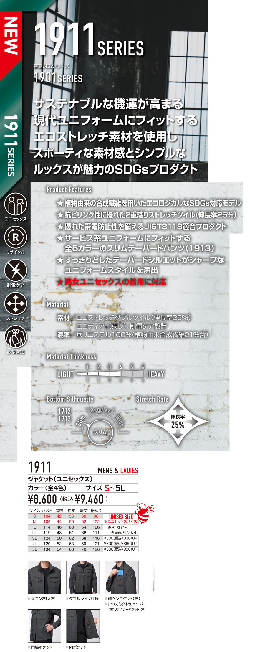 【新商品予約受付中】サステナブルな機運が高まる現代ユニフォームにフィットするエコストレッチ素材を使用しスポーティな素材感とシンプルなルックスが魅力のSDGsプロダクト |