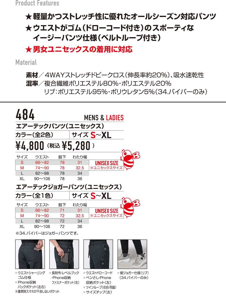 - 秋冬用エアーテックパンツ(ユニセックス)【新商品予約購入】