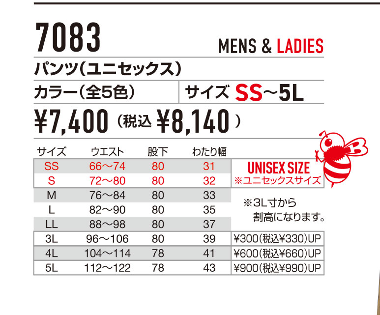 秋冬用ユニセックスパンツ【JIS-T8118適合品】