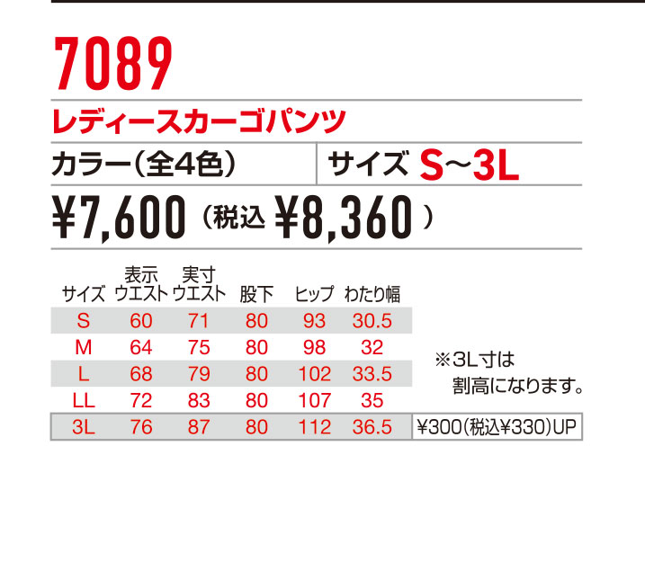 | 3L | 4,500円(税込 4,950円) |