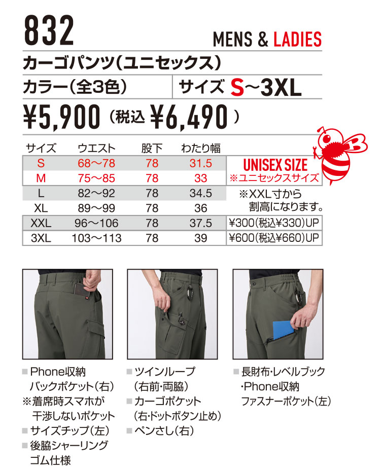 【バートル】 秋冬用カーゴパンツ(ユニセックス)【新商品予約購入】 / kr832
