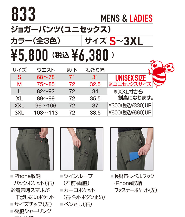 【バートル】 秋冬用ジョガーパンツ(ユニセックス)【新商品予約購入】 / kr833