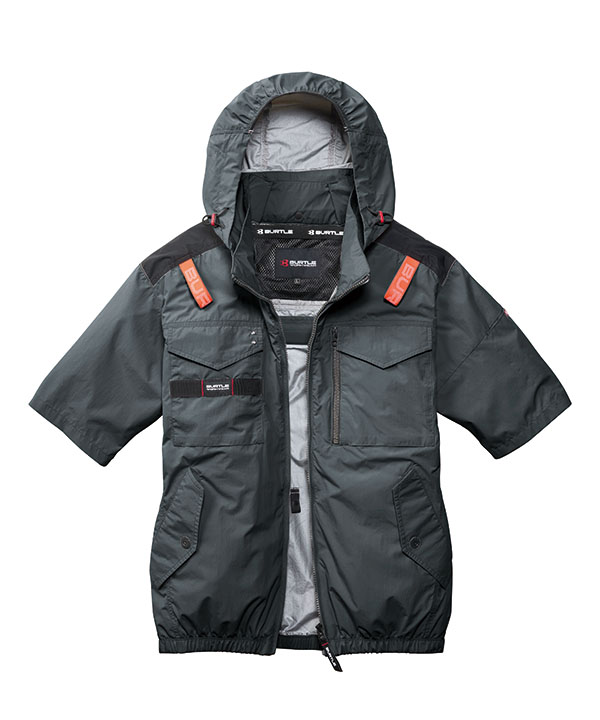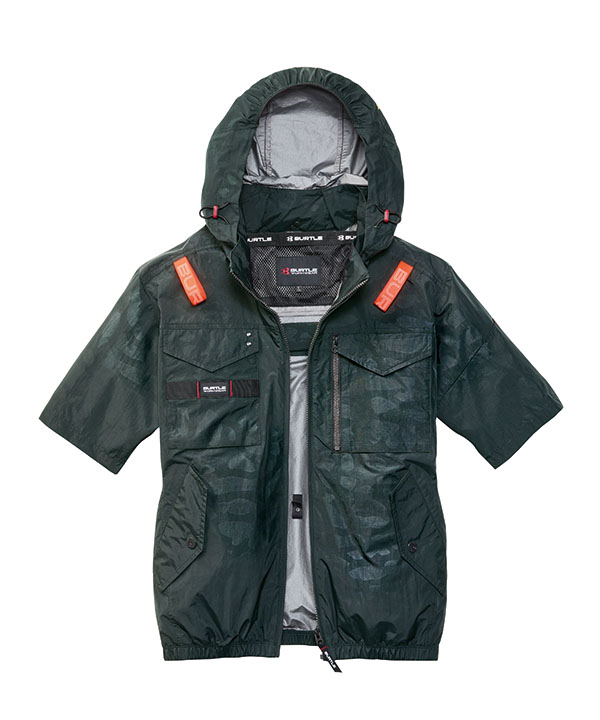 | 仕様特徴 | 撥水性、耐久性、軽量を兼備し空気漏れを防ぐタスランナイロンクロス(AC仕様) アルミコーティングを施しUVカット、-9度の遮熱効果を確保(未加工素材比較) 背ヨークに保冷剤を収納可能な通気エアダクトポケットを配備 視認性、音、ヘルメットに対応するメッシュ構造フードはファスナー衿に収納可能 背面にフルハーネスランヤード装着対応仕様 |