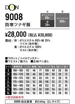 TOPページ > アイテムから探す > 防寒服 > 防寒ツナギ > ヤマタカ防寒ツナギ一覧 > sy9008