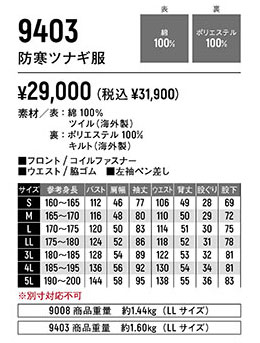 TOPページ > アイテムから探す > 防寒服 > 防寒ツナギ > ヤマタカ防寒ツナギ一覧 > sy9403