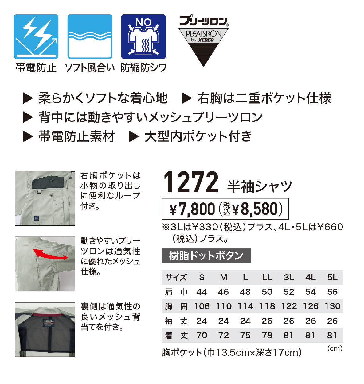 TOPページ > アイテムから探す > 作業服(上着) > 半袖シャツ(春夏用薄手生地) > ジーベック半袖シャツ(春夏用薄手生地)一覧 > xe1272