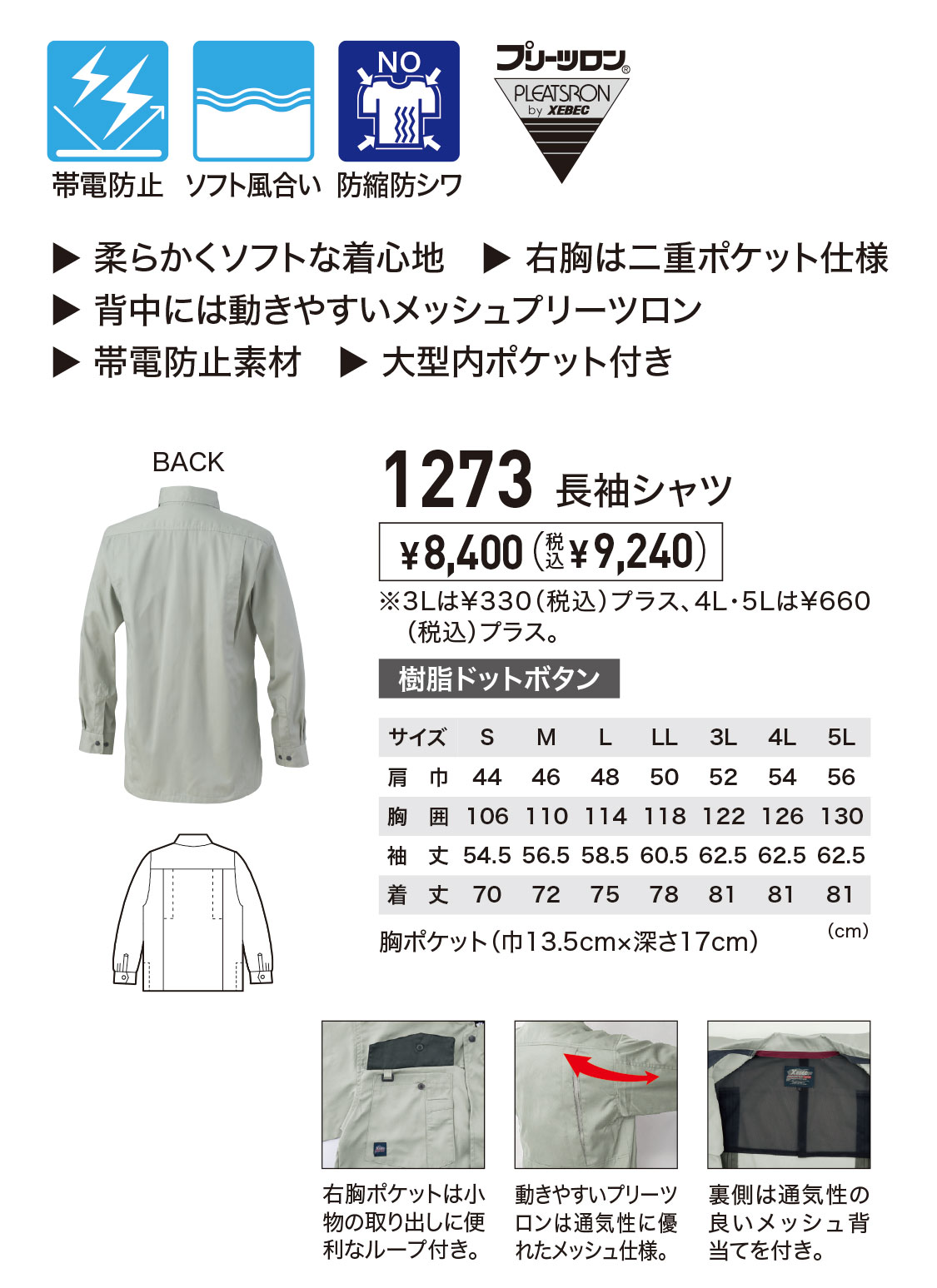 TOPページ > アイテムから探す > 作業服(上着) > 長袖シャツ(春夏用薄手生地) > ジーベック長袖シャツ(春夏用薄手生地)一覧 > xe1273