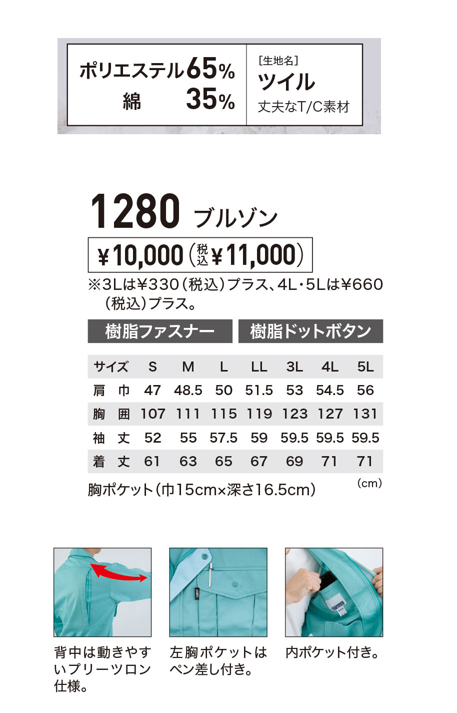 TOPページ > アイテムから探す > 作業服(上着) > 秋冬用ブルゾン > ジーベック秋冬用ブルゾン一覧 > xe1280
