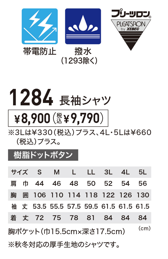 TOPページ > アイテムから探す > 作業服(上着) > 秋冬用長袖シャツ(厚手生地) > ジーベック秋冬用長袖シャツ(厚手生地)一覧 > xe1284