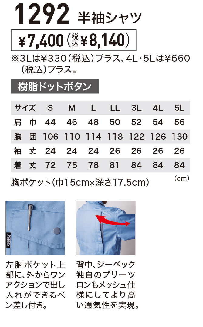 TOPページ > アイテムから探す > 作業服(上着) > 半袖シャツ(春夏用薄手生地) > ジーベック半袖シャツ(春夏用薄手生地)一覧 > xe1292
