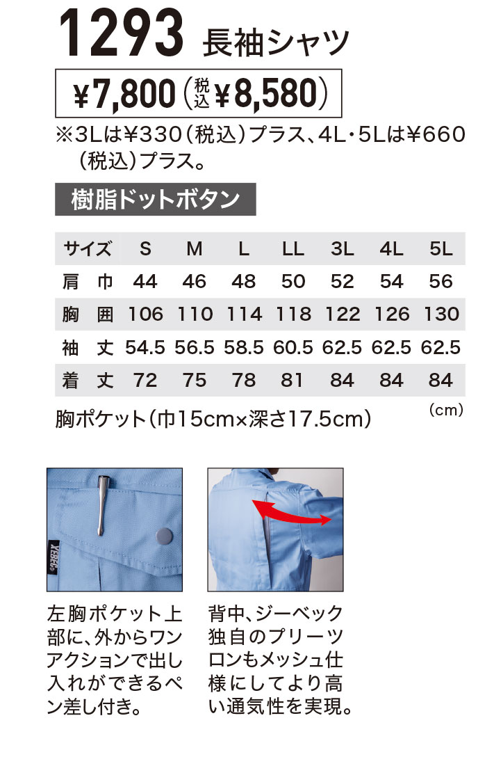 TOPページ > アイテムから探す > 作業服(上着) > 長袖シャツ(春夏用薄手生地) > ジーベック長袖シャツ(春夏用薄手生地)一覧 > xe1293
