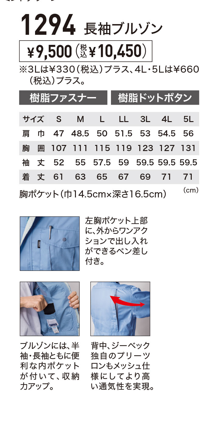 TOPページ > アイテムから探す > 作業服(上着) > 春夏用長袖ブルゾン > ジーベック春夏用長袖ブルゾン一覧 > xe1294