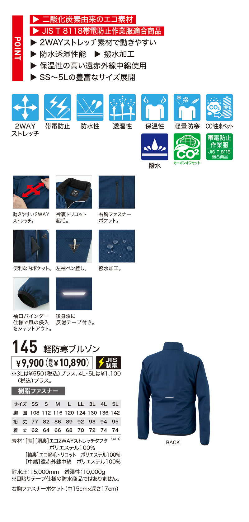 TOPページ > アイテムから探す > 防寒服 > 軽量防寒 > ジーベック軽量防寒一覧 > xe145