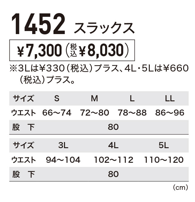 | 特記事項 | サイズ表の股下寸法から股下80cmへ徐々に変更しています。製造ロットによりサイズ表の股下の商品と80cmの物が混在しています。ご了承ください。 |