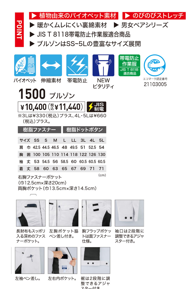 TOPページ > アイテムから探す > 作業服(上着) > 秋冬用ブルゾン > ジーベック秋冬用ブルゾン一覧 > xe1500