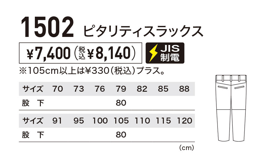 TOPページ > 静電服 > 静電服商品一覧 > 秋冬用ピタリティスラックス(JIS-T8118合格品) > xe1502