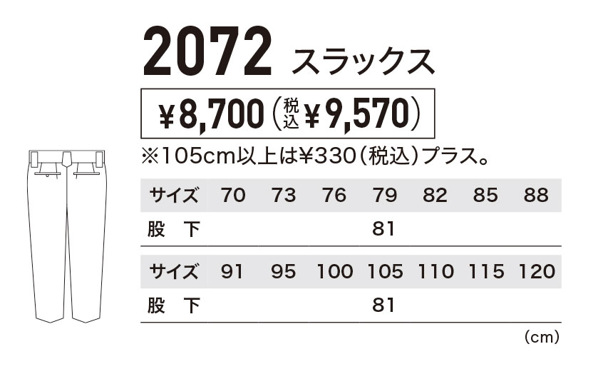 | 特記事項 | ツータックからワンタックへ仕様変更しておりますが、ツータックの商品が混じることもございます。股下が80cmに変更になっています。 |