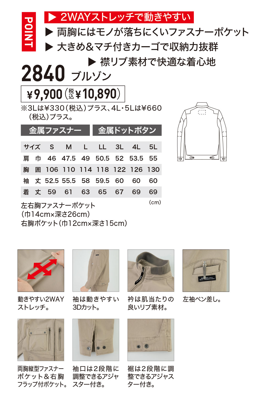 TOPページ > アイテムから探す > 作業服(上着) > 秋冬用ブルゾン > ジーベック秋冬用ブルゾン一覧 > xe2840