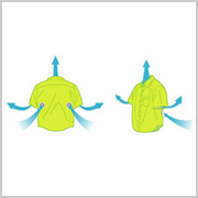 【1】服内に大量の風を流すことにより汗を完全に蒸発させます。 |