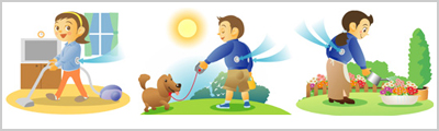 アウトドアでの使用![]() ・キャンプ、ハイキングで ・スポーツ観戦 ・軽い運動時 ・釣り、ゴルフ ・ウォーキング |